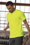 6.6-oz, 100% performance polyester jersey. Moisture wicking. Breathable. Flat lock seams. Reflective features. Tagless. Modern fit. Due to the nature of polyester, special care must be taken throughout the decoration process. Please refer to product size spec PDF file for more details.