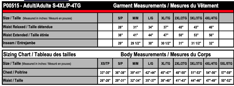 | Waist Extended | 38" | 41" | 44" | 47" | 50" | 53" | 56" |